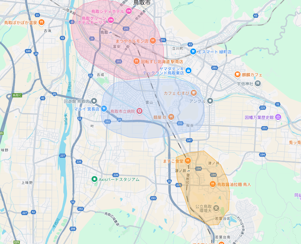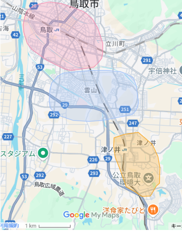 鳥取駅周辺エリア 中間エリア 大学周辺エリア 鳥取駅周辺エリア 中間エリア 大学周辺エリア